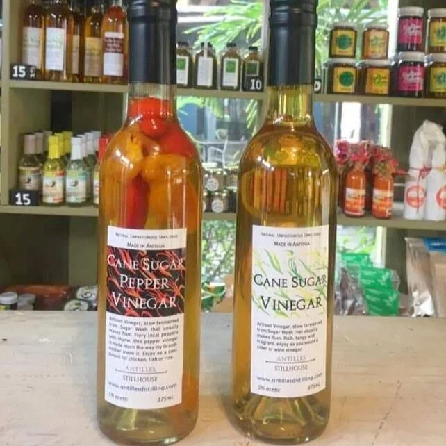 Artisan Vinegar, slow fermented from Sugar Wash that usually makes Rum. Fiery local peppers with thyme, this pepper vinegar is made much the way my Grandmother made it. Enjoy as a condiment for chicken, fried fish or on rice. Add to your favorite Asian noodle dish for just enough heat and kick of pepper.