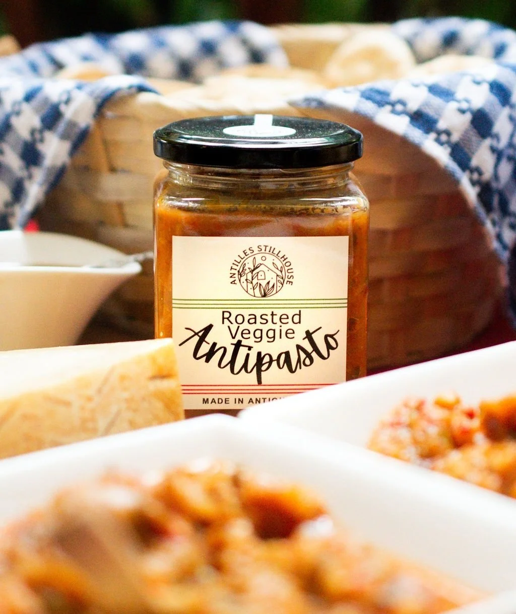 Our antipasto is a blend of slow roasted vegetables and select herbs grown in Antigua! The perfect option for entertaining on a moment’s notice. Delicious served with charcuterie and cheese. Enjoy as a dip with crackers or bread, as a condiment, or a flavourful addition to pasta sauce.